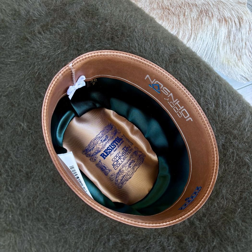 The Grizzly Mountain from the Cody Johnson Collection combines rugged texture with refined western style. Made in the USA with a distinctive Kodiak finish that gives the 6X wool a hair-like feel, this sage cowboy hat features a 4 3/8" CJ profile crown and 4 1/4" brim. A matching ribbon hatband is accented with a Cody Johnson pin for a signature touch. Part of the Fall 2025 lineup.